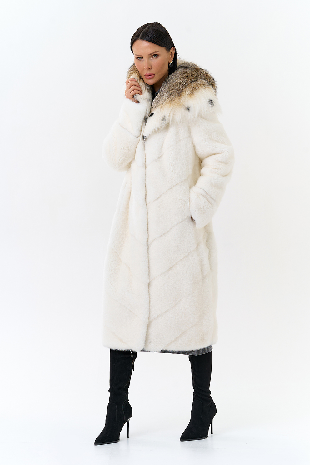 Норковая шуба в диагональном раскладе